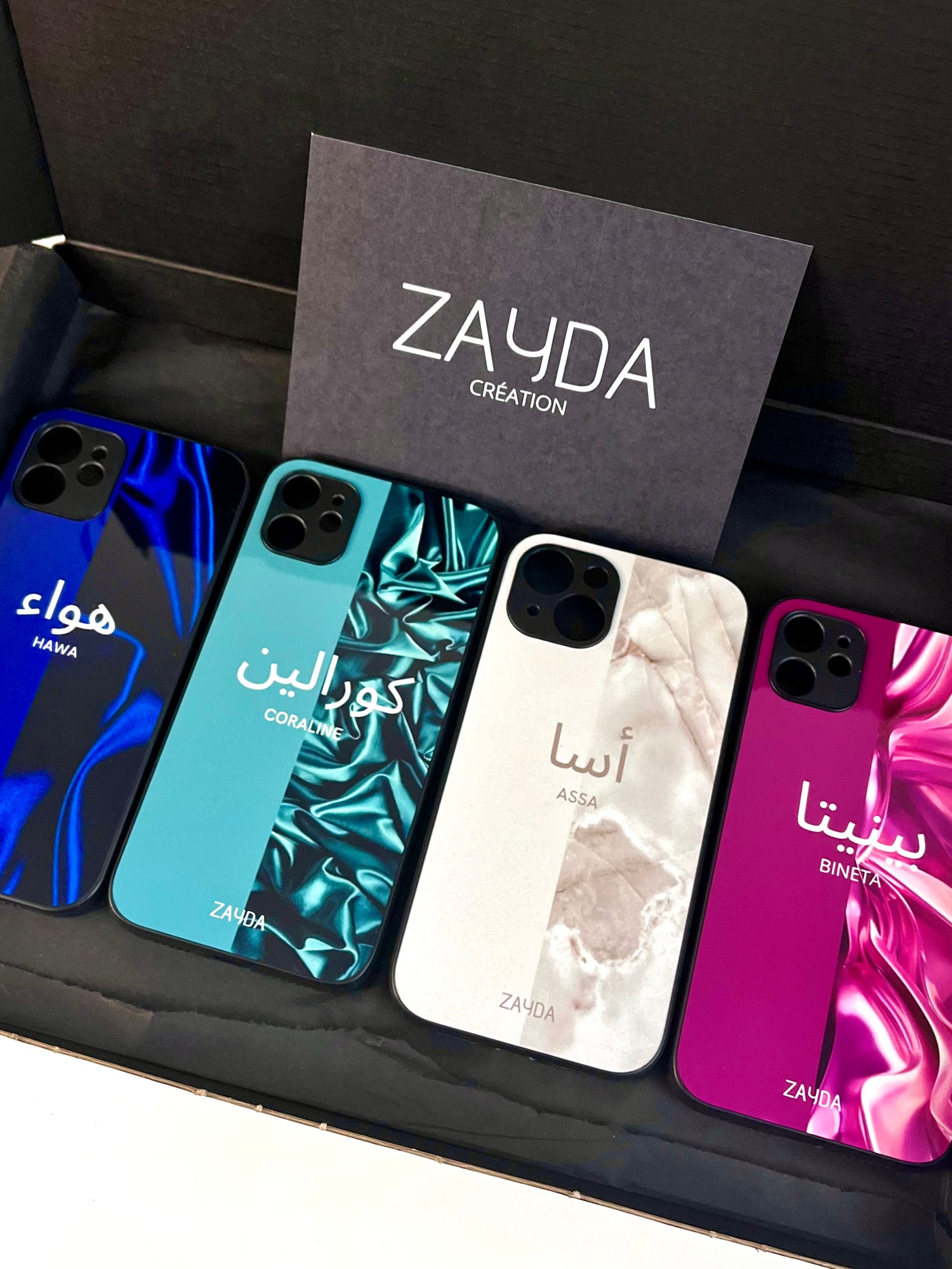 Inspiré par la beauté et la culture de notre maison, ZAYDA création conçoit des coques de téléphones élégantes et raffinées. Nos étuis sont soigneusement faits sur mesure selon vos goûts et fabriqués à la main dans notre atelier. Avec une variété de designs uniques et personnalisables, créez la coque qui vous reflète le mieux.